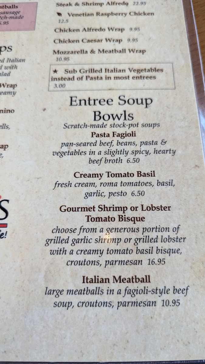 Serves 2-4. Scratch-made Alfredo sauce. Grilled broccoli, Italian green beans, pearl onions, baby carrots. Top it off your way with chicken, shrimp and more. Served with 1/2 dozen garlic breadsticks.
